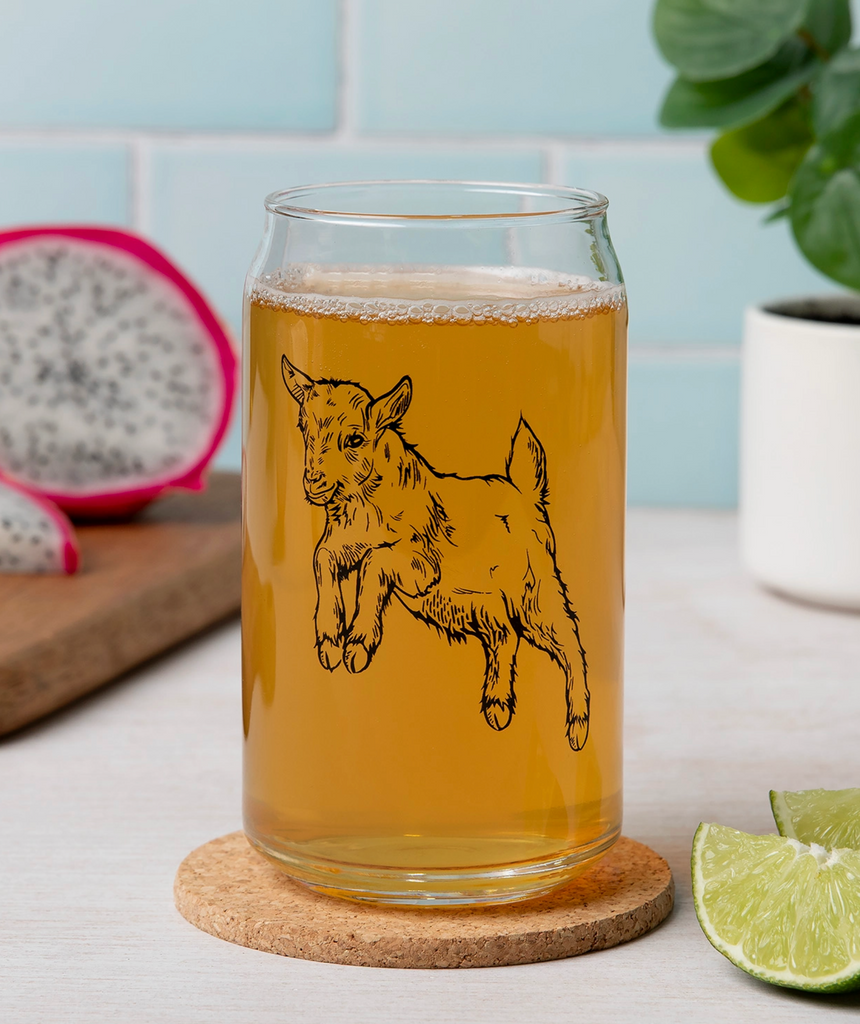 This 16 oz can shaped glass is a nod to a classic soda and beer cans.